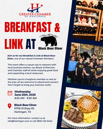 Breakfast & Link at Black Bear Diner Set a Reminder Enter your email address below to receive a reminder message. Email address Select the amount of Days before the event -- Select Days Before Event -- 1 Day 2 Days 3 Days 1 Week Captcha Validation Please complete the Captcha Submit Date and Time Wednesday Jun 25, 2025 8:30 AM - 9:30 AM CDT Set a Reminder Enter your email address below to receive a reminder message. Email address Select the amount of Days before the event -- Select Days Before Event -- 1 Day 2 Days 3 Days 1 Week Captcha Validation Please complete the Captcha Submit Share × Print Email Add to Calendar Facebook Twitter LinkedIn Tell a Friend × Select Calendar Type × Google Yahoo iCal (Outlook, Apple, or other)