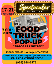 Come join us Bookkeeping RGV at 2906 S. Expressway 83, Harlingen, TX on 11-17-25 - 11-21-25 for a week full of satisfying your cravings at our Food Truck Park Pop-Up Event!